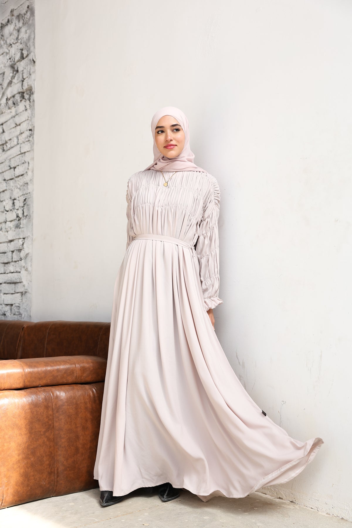 فستان كريب كتان خفيف وناعم، يمنحك مظهراً مريحاً وإطلالة أنيقة دون تكلّف